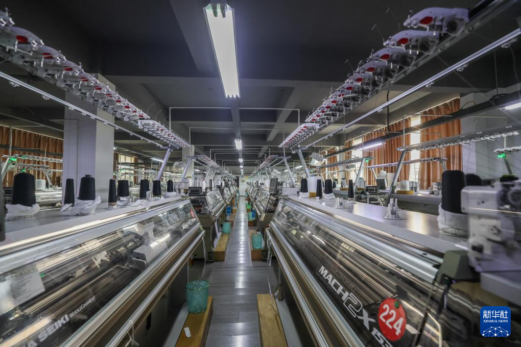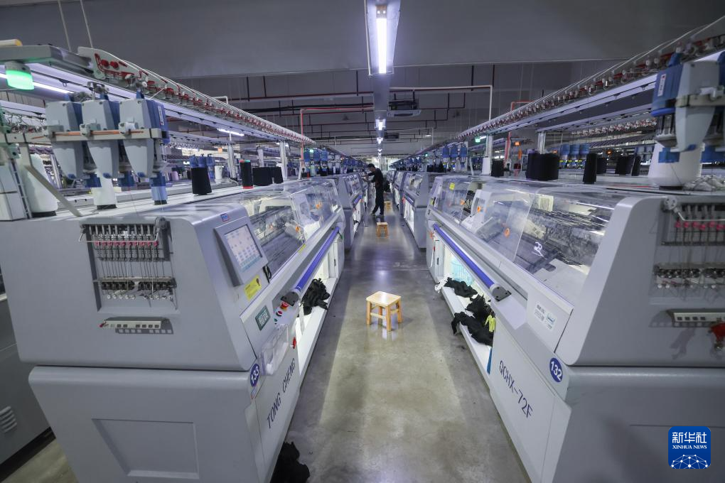 4月9日,在濮院镇的嘉兴市蒂维时装有限公司的数字化车间内,300多台电脑横机正在生产新款毛衫。
