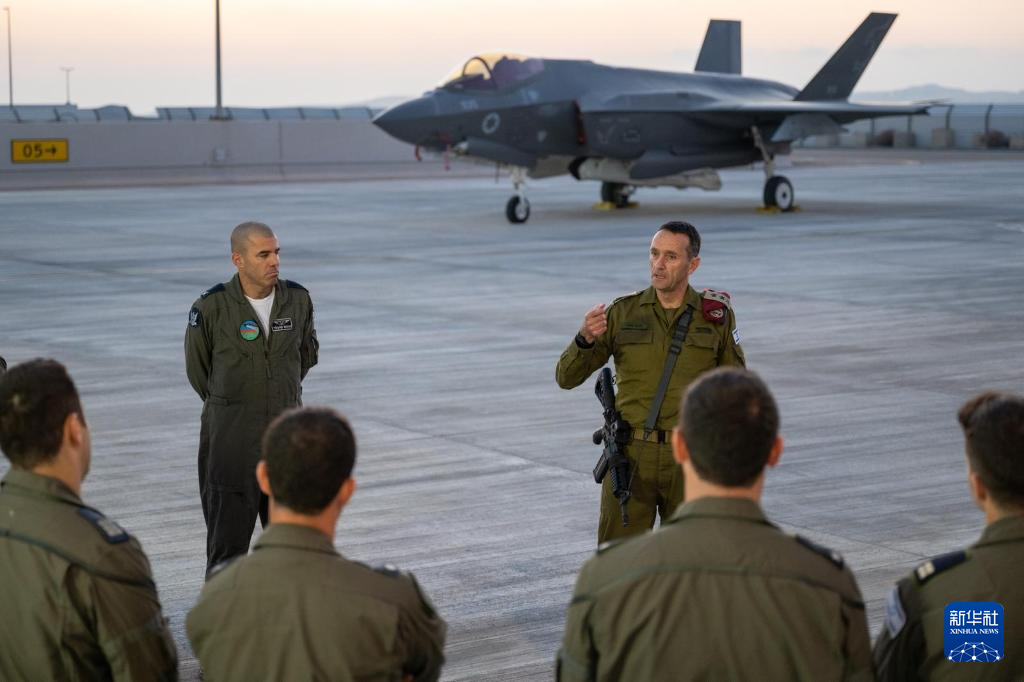 4月15日,以色列国防军总参谋长哈莱维(后右)在以色列南部的内瓦提姆空军基地讲话。
