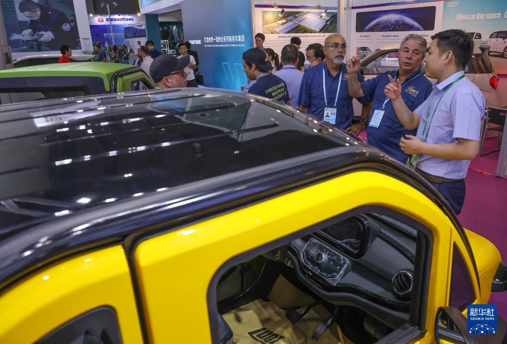 4月15日,采购商在第135届广交会上了解中国新能源汽车展品。