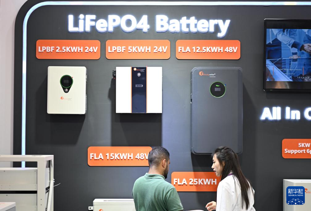 这是一家企业在第135届广交会上展出的锂电池产品(4月15日摄)。
