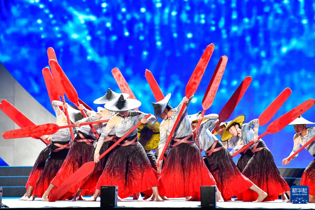 4月20日晚,演员在2024年贵州台江苗族姊妹节开幕式上表演民族节目。