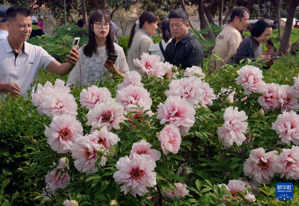 4月16日,游客在河南省洛阳市中国国花园内赏花。