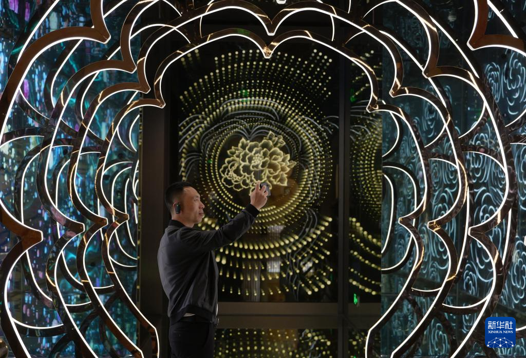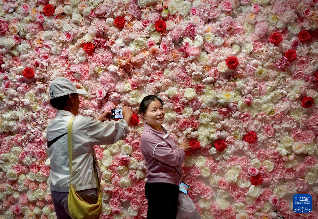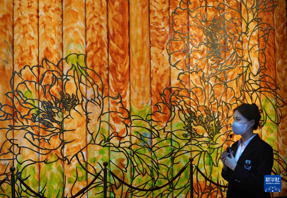 4月16日,这是在洛阳牡丹阁拍摄的牡丹琉璃墙。