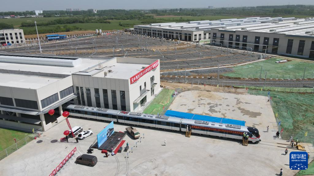 4月24日,合肥轨道交通8号线一期首列电客车完成交付(无人机照片)。