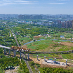 当日,由中铁四局施工的合新铁路安徽段站前七标顺利完成上跨既有铁路淮南上行线架梁施工,为后续施工奠定基础。合新铁路起自安徽合肥,终至江苏新沂,设计时速350公里。