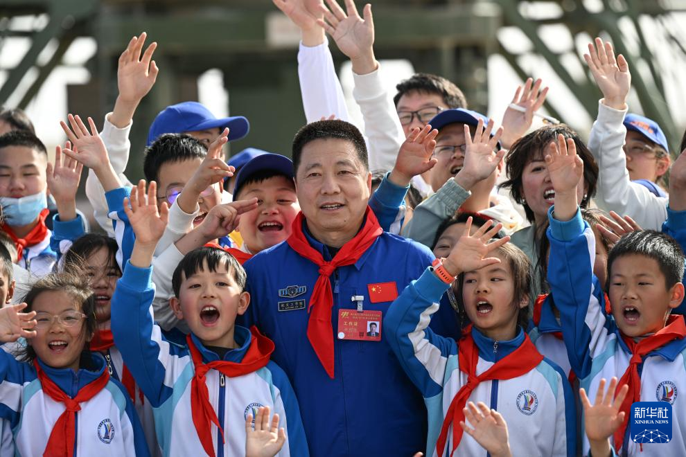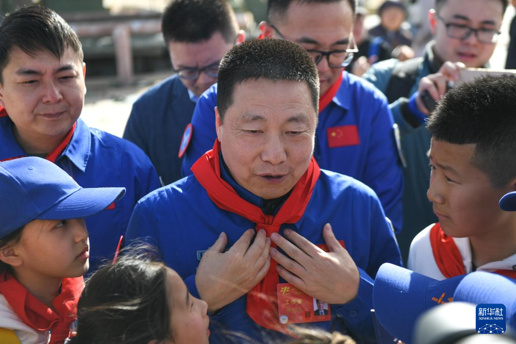 4月24日,中国载人航天工程副总设计师、航天英雄杨利伟与少先队员交流。
