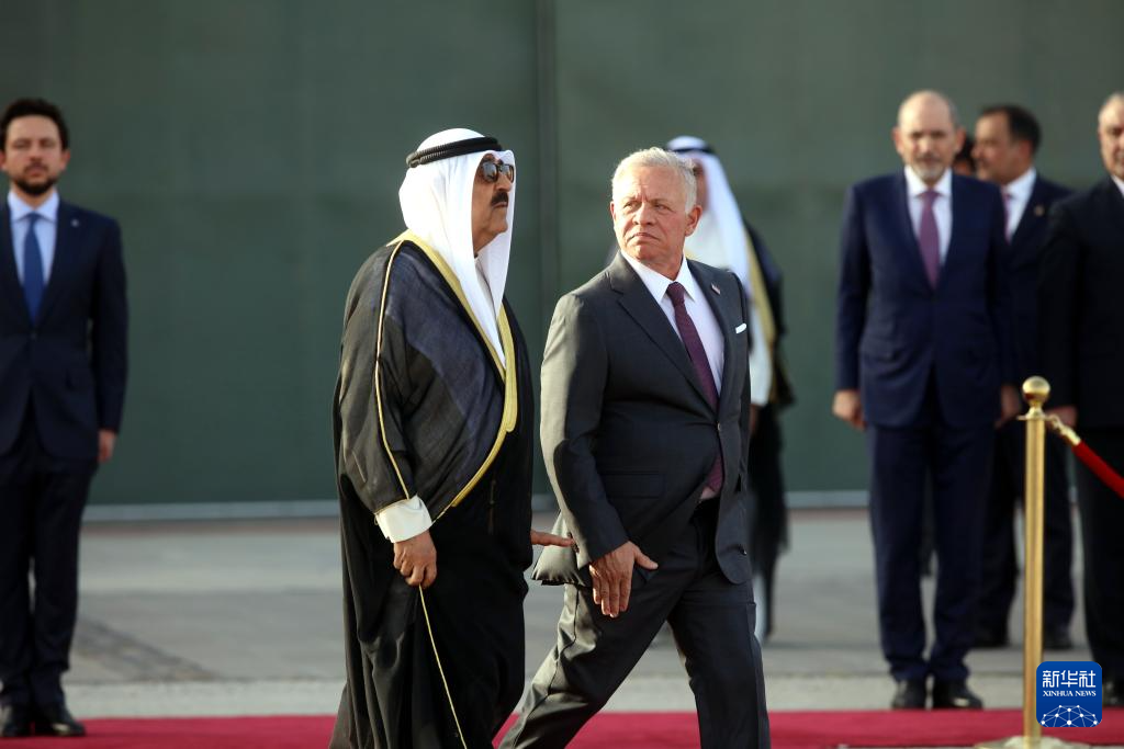 4月23日,在约旦首都安曼,约旦国王阿卜杜拉二世欢迎到访的科威特埃米尔米沙勒。