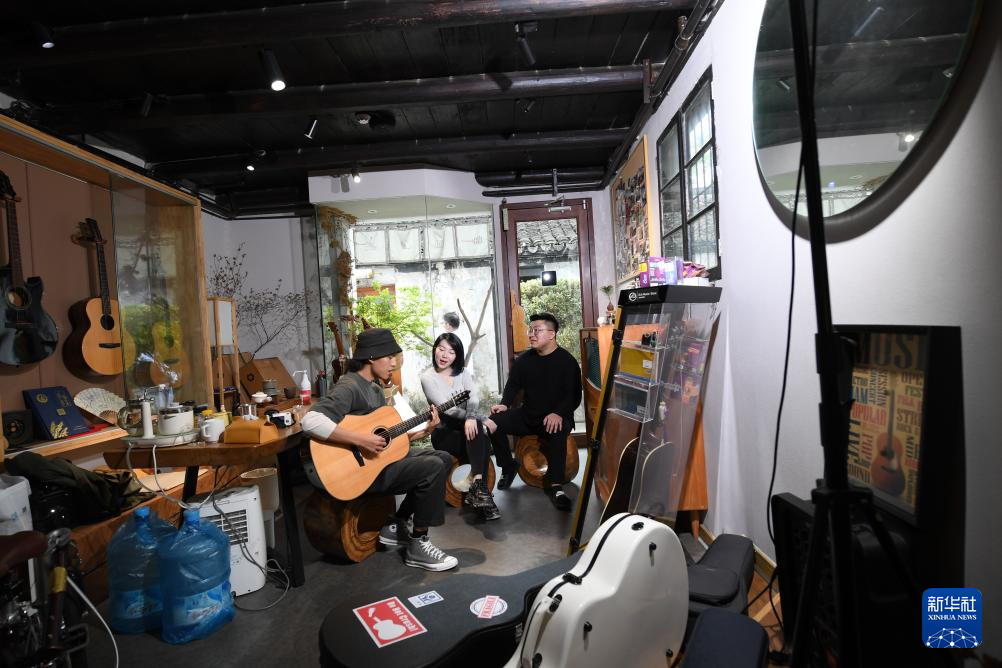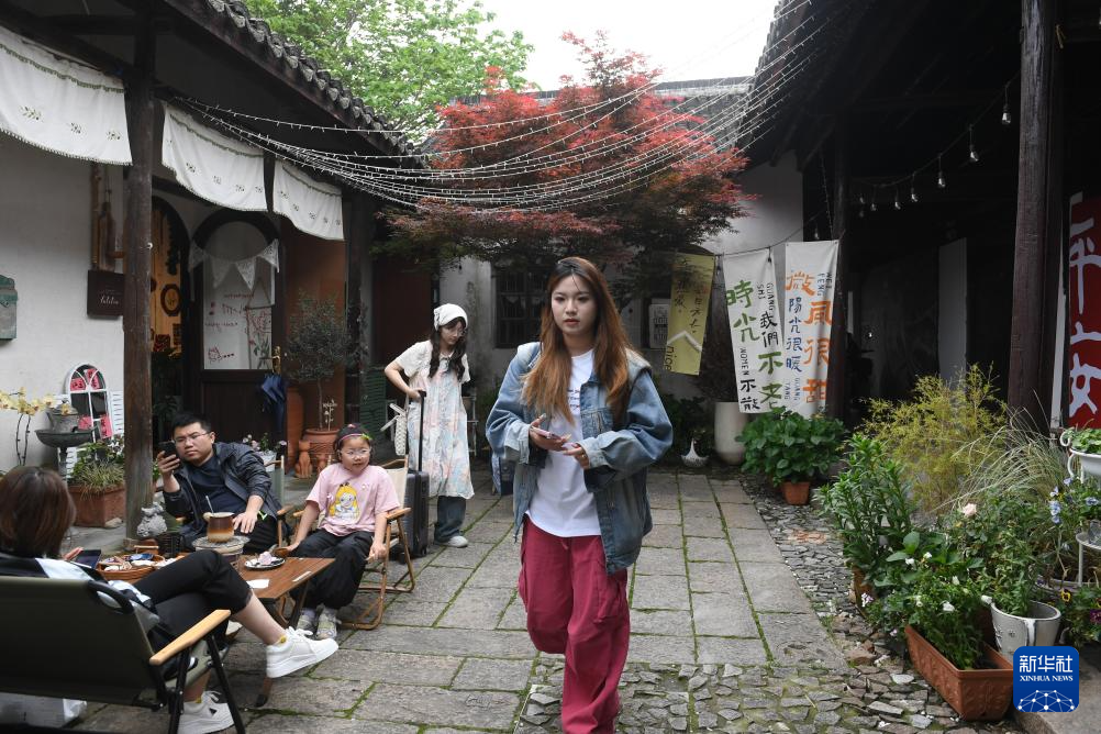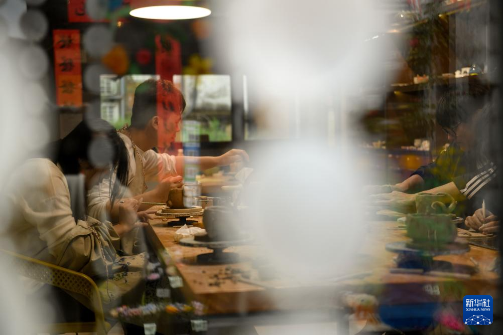 人们在小西街一个老民房改造的手作生活区做手工(4月21日摄)。