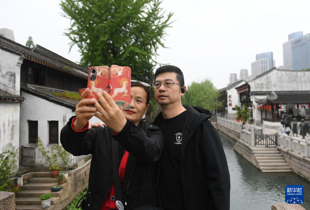 一对夫妇在小西街永安桥上合影(4月21日摄)。