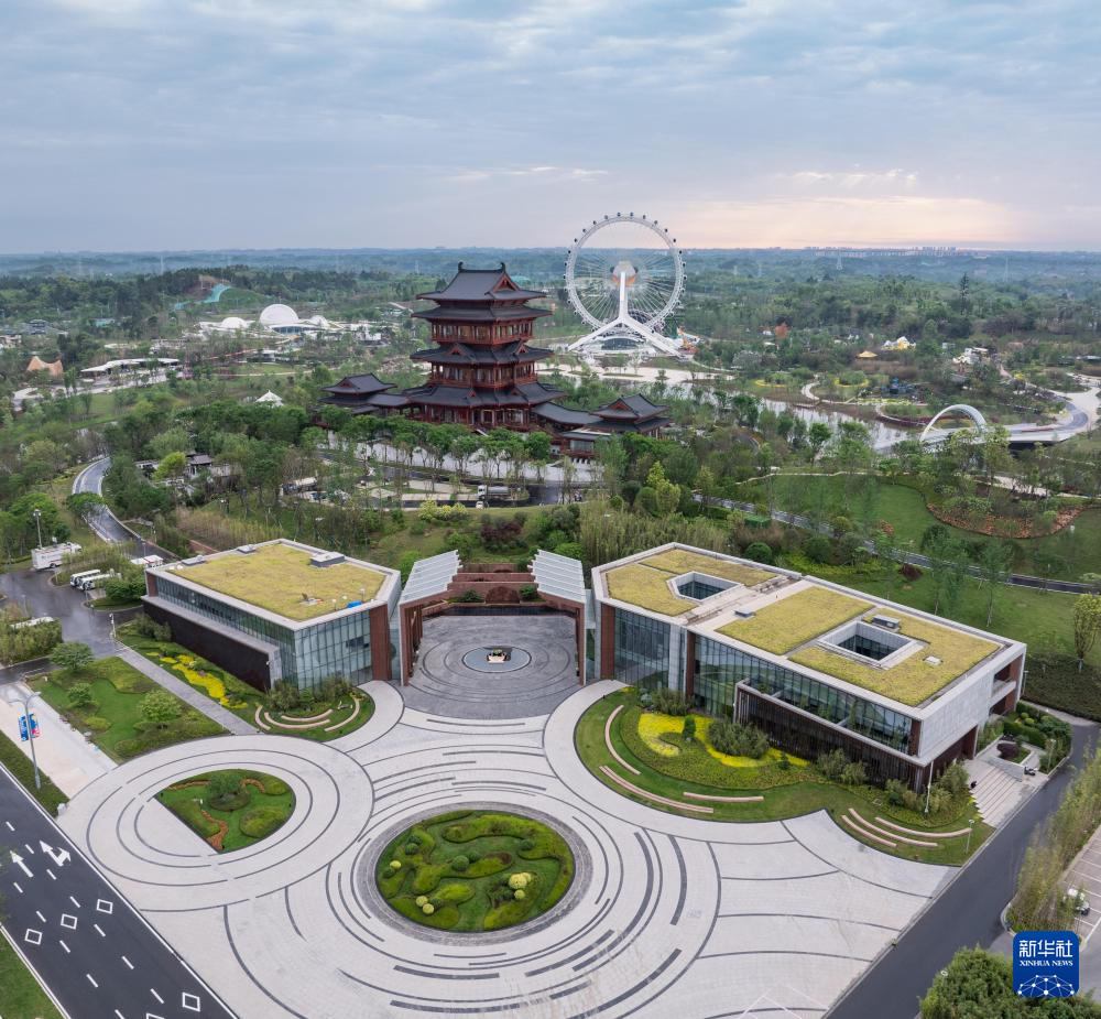 这是4月22日拍摄的成都世园会主会场锦云楼。