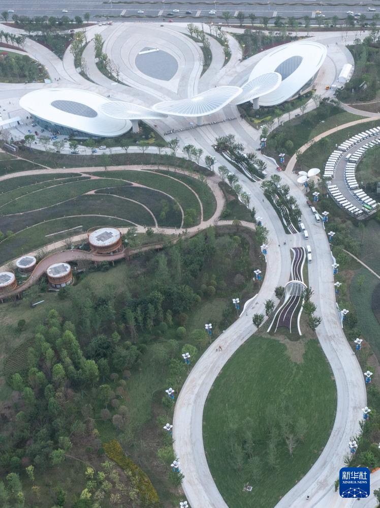 这是4月21日拍摄的成都世园会主会场的主展馆(无人机照片)。