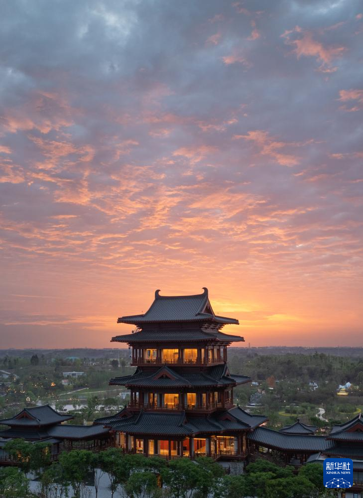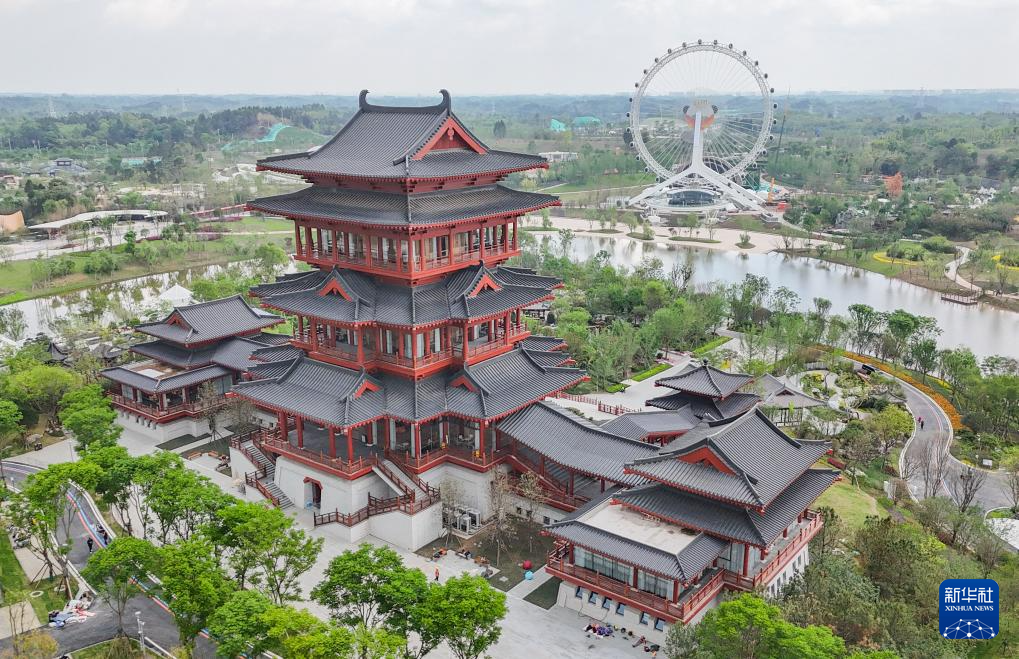 这是4月23日拍摄的成都世园会主会场锦云楼(无人机照片)。