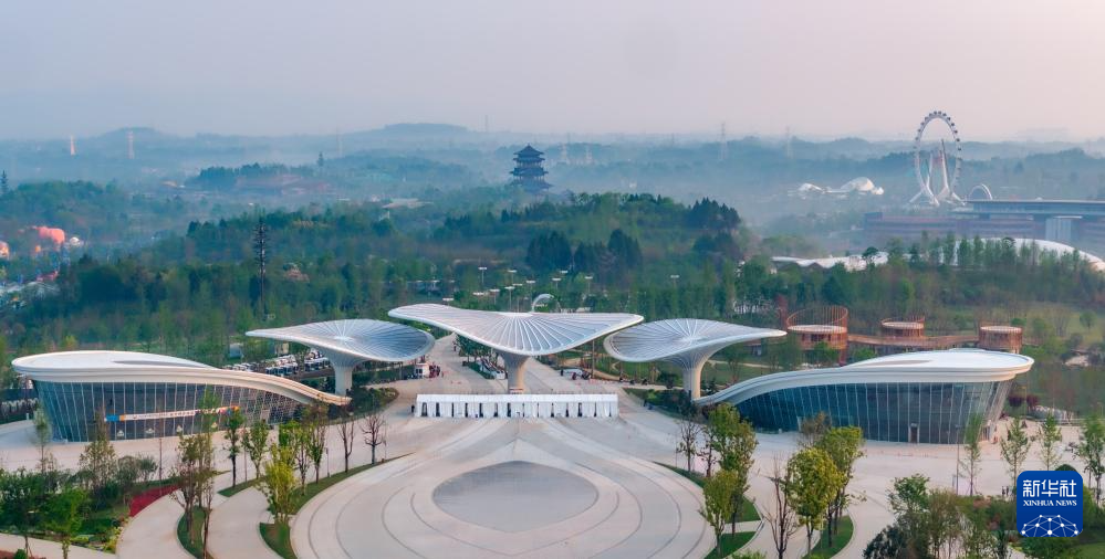 这是成都世园会的主入口(无人机照片,4月21日摄)。