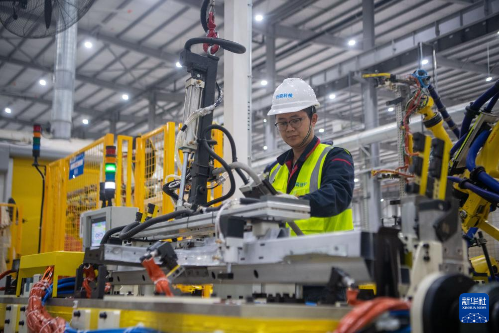 4月25日,在重庆市璧山区的辰致科技璧山基地内,工作人员在生产线上测试设备。该基地是中国长安集团在璧山投产的线控底盘数字化、智能化、低碳化智能工厂,基地主要生产新能源汽车车身零部件产品及线控底盘产品,目前已进入试制投产阶段,产品将配套于阿维塔、深蓝汽车、长安启源等品牌的多个新能源车型。