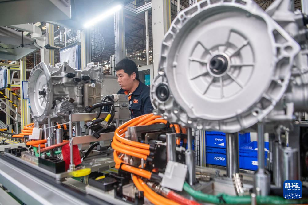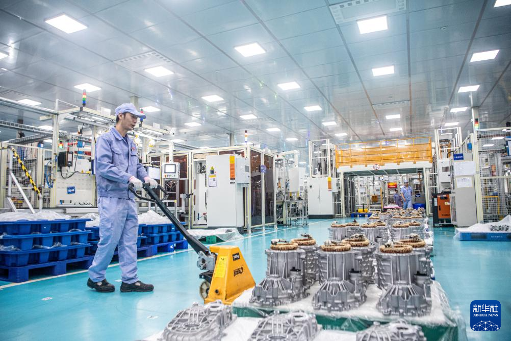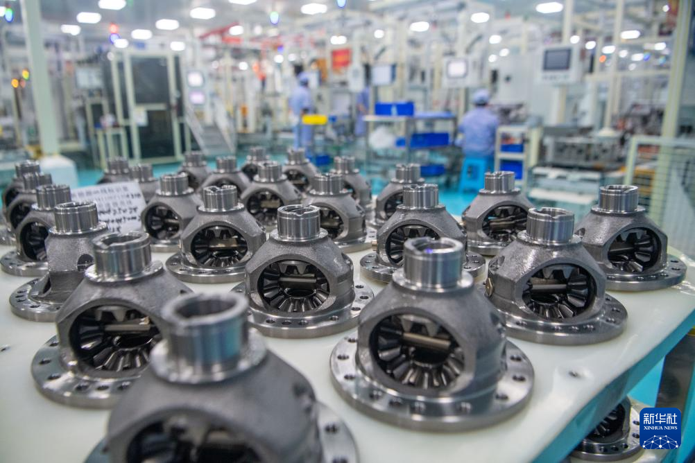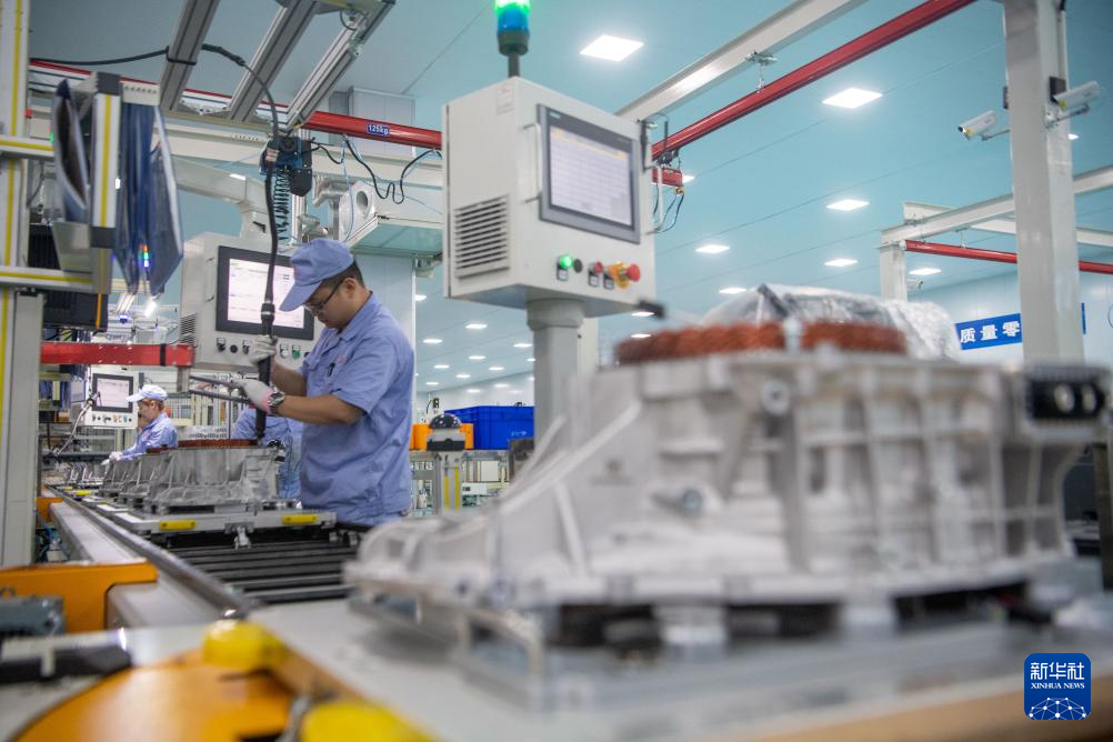 4月25日,在重庆市璧山区的重庆青山工业有限责任公司车间内,工作人员在生产线上作业。该企业以“新能源汽车电驱系统和传动控制系统”为主业,实现了新能源汽车传动系统从关键核心零部件到产品总成自主可控。