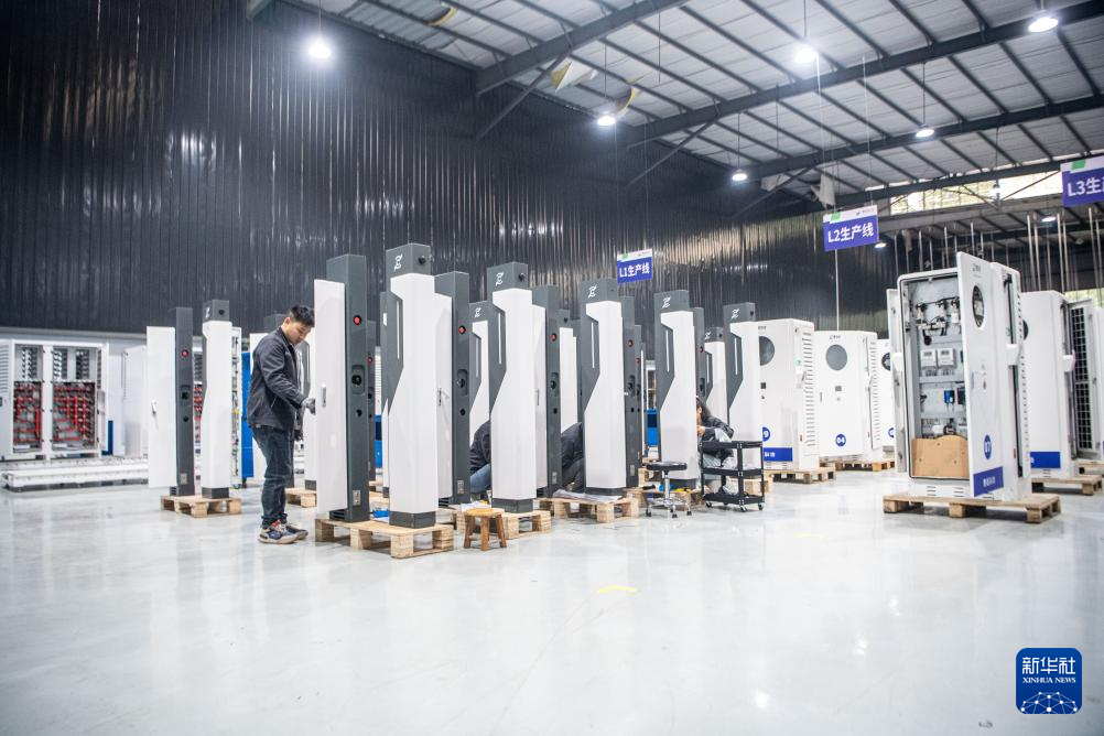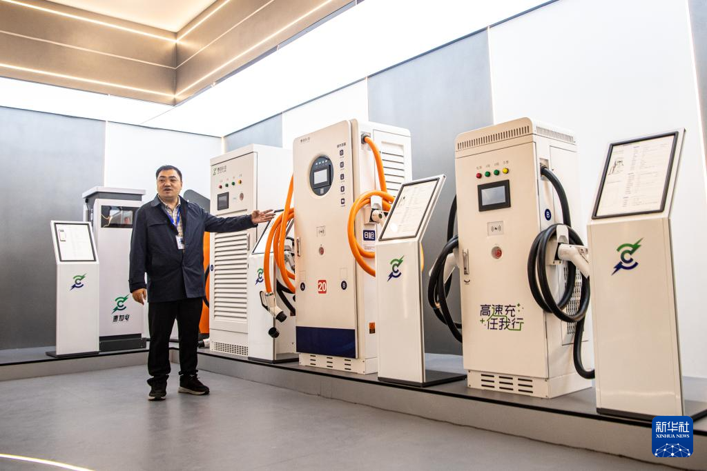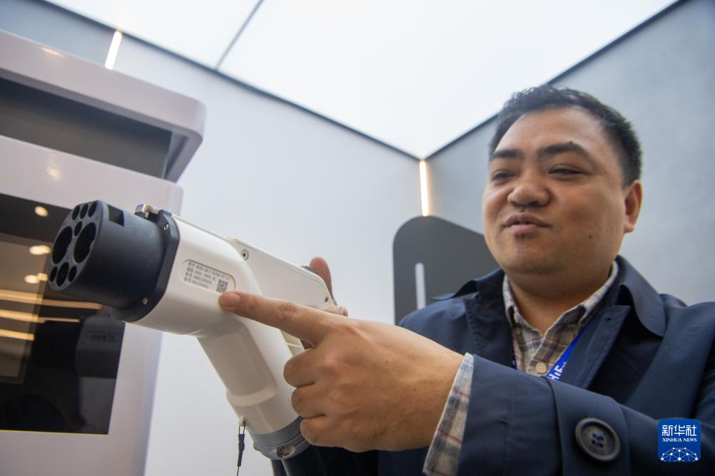 4月25日,在重庆市璧山区的重庆惠程信息科技股份有限公司展厅内,工作人员介绍该公司研发生产的新能源汽车充电桩产品。该企业是国家级高新技术企业和重庆市专精特新企业,主要从事新能源汽车充电基础设施建设、充电场站运营及充电桩设备研发制造。