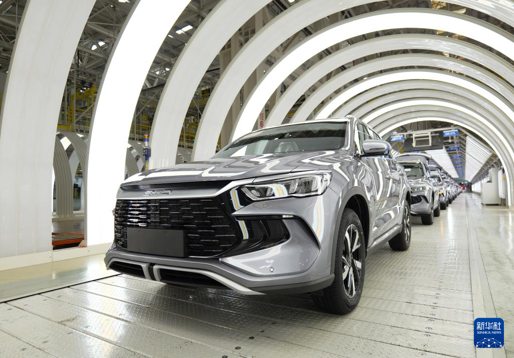 这是4月25日在郑州航空港区比亚迪总装工厂拍摄的新能源汽车“宋Pro”。