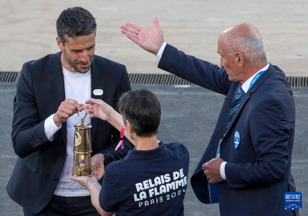 当日,巴黎奥运会火种在希腊首都雅典帕纳辛奈科体育场,由希腊奥委会正式交给巴黎奥组委,巴黎奥组委主席托尼·埃斯坦盖从希腊奥委会主席卡普拉洛斯手中接过奥运火炬。