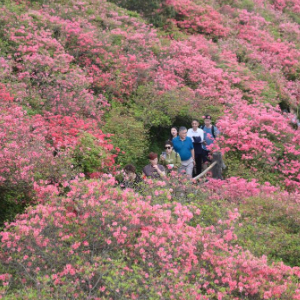 近日,湖北省麻城市龟峰山景区的十万亩连片杜鹃花进入盛花期,吸引各地游客前来赏花。龟峰山景区天然古杜鹃群落平均树龄在百年以上,每年春季,集中连片的杜鹃花绽放,形成红色花海,美不胜收。