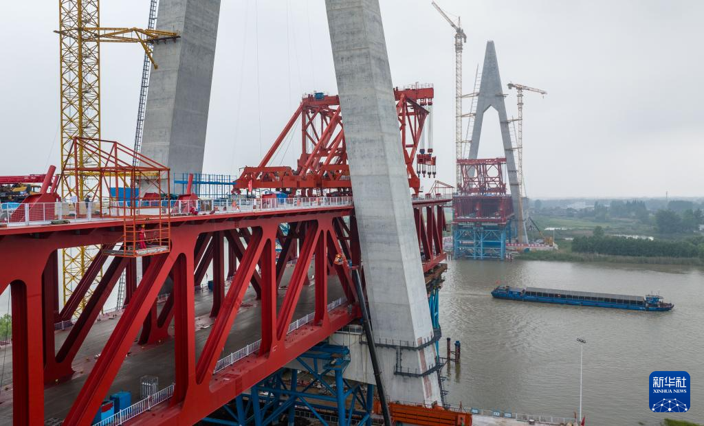 “五一”国际劳动节前,由中铁四局承建的位于安徽省马鞍山市当涂县的巢马铁路马鞍山长江公铁大桥副汊航道桥施工现场一派繁忙,施工人员奋战在建设一线,确保重点工程建设进展顺利。