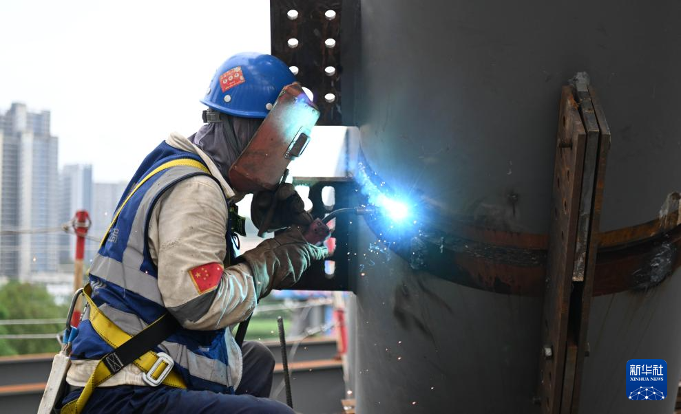 4月29日,工人在深圳自然博物馆项目焊接构件。