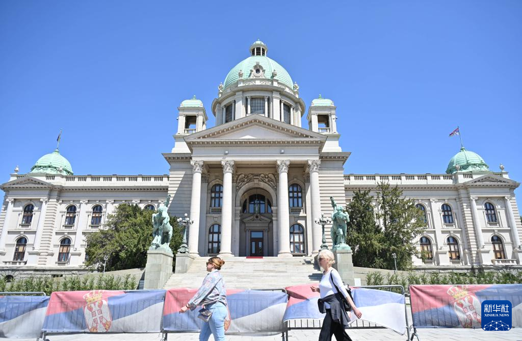 位于塞尔维亚贝尔格莱德的塞尔维亚国民议会大厦(2024年4月28日摄)。