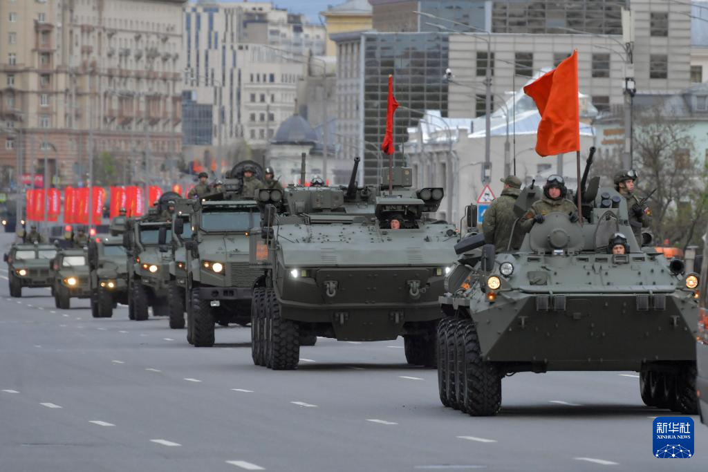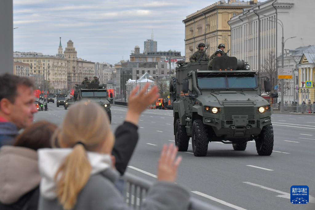 当日,莫斯科举行纪念卫国战争胜利79周年阅兵式彩排。