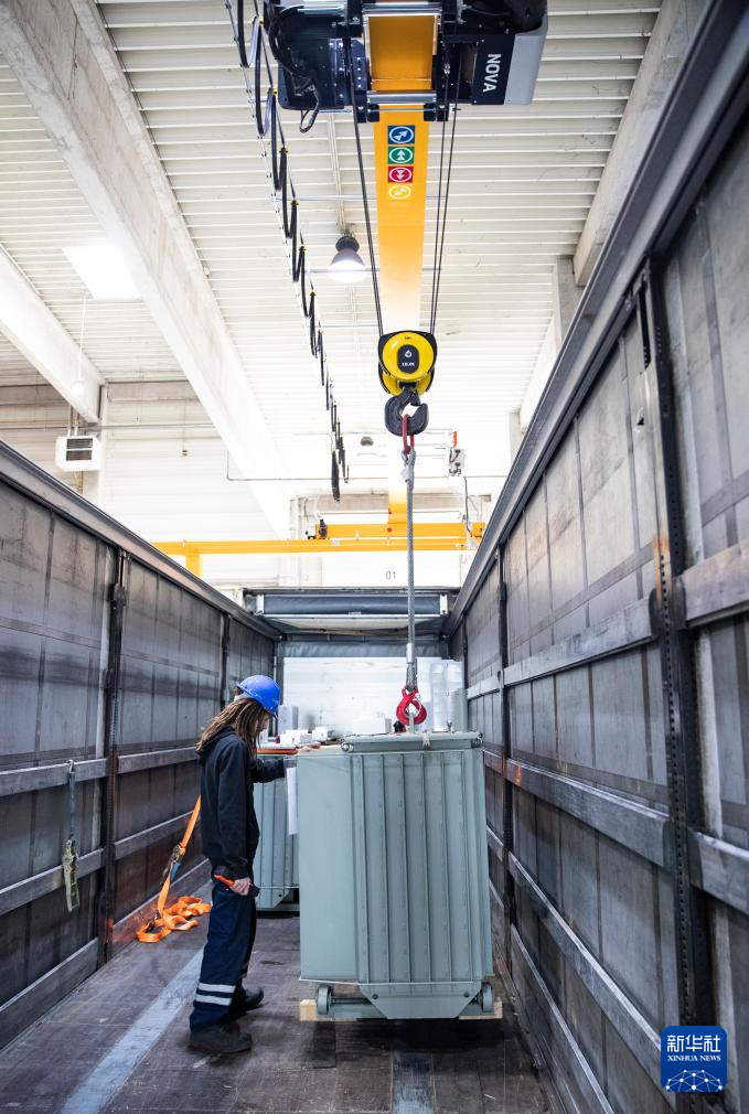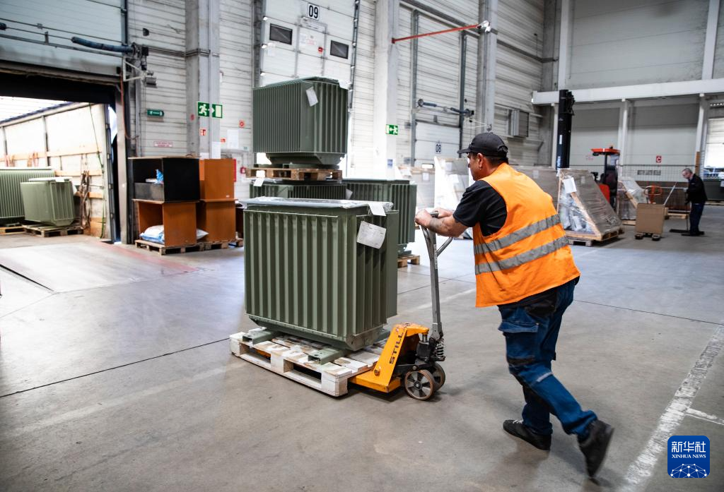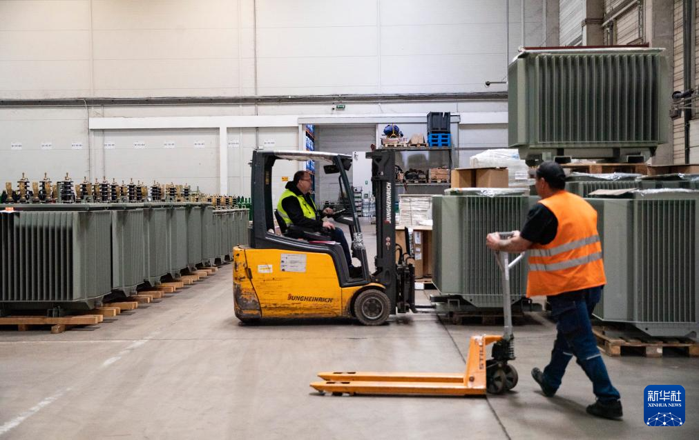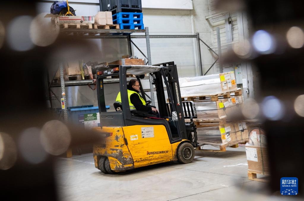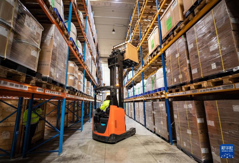 4月29日,工人在位于匈牙利布达佩斯的切佩尔港物流园仓储区域工作。