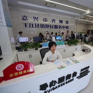 5月9日,居民在嘉兴市秀洲区王江泾镇便民服务中心办理各项业务。
