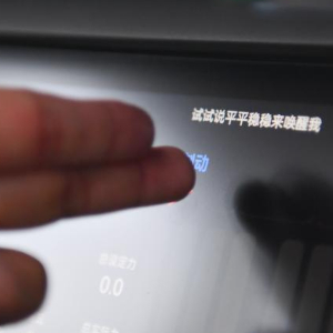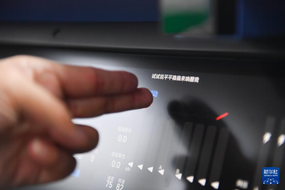5月9日,工作人员在机车的智能座舱内演示人工智能语音交互系统。