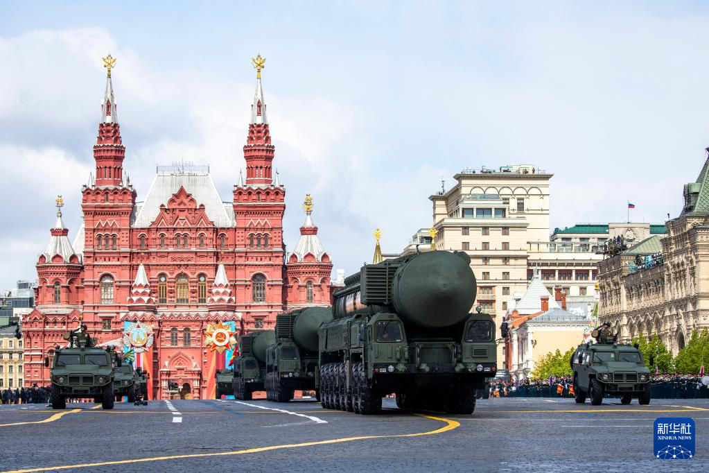 5月9日,在俄罗斯首都莫斯科,“亚尔斯”导弹系统编队驶过红场。