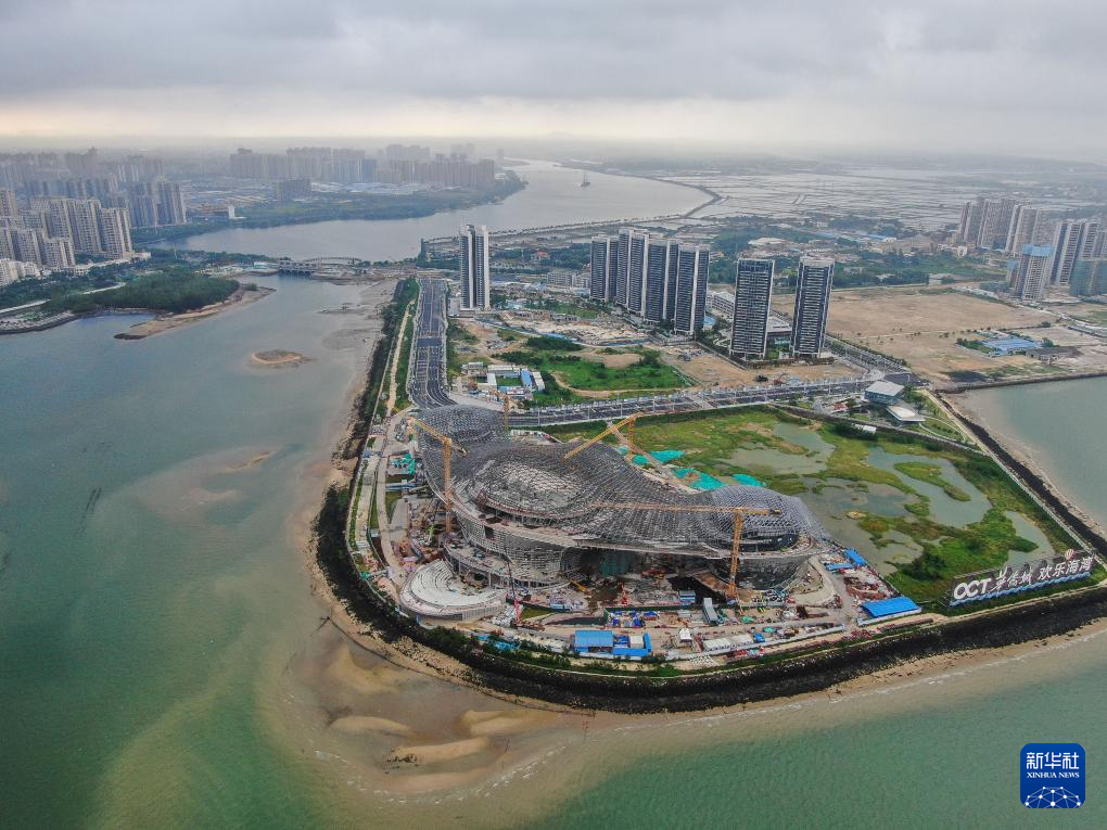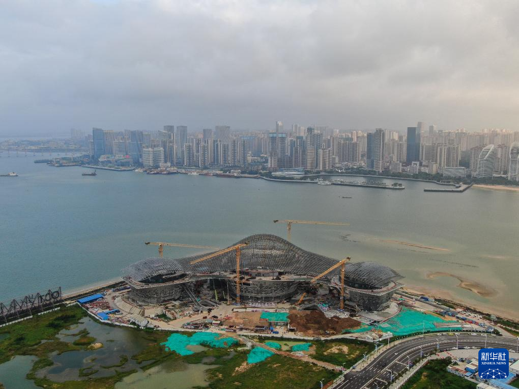 湛江文化中心三面环海,包括大小剧院、美术馆、博物馆等功能区域,建成后将成为湛江文化新地标。