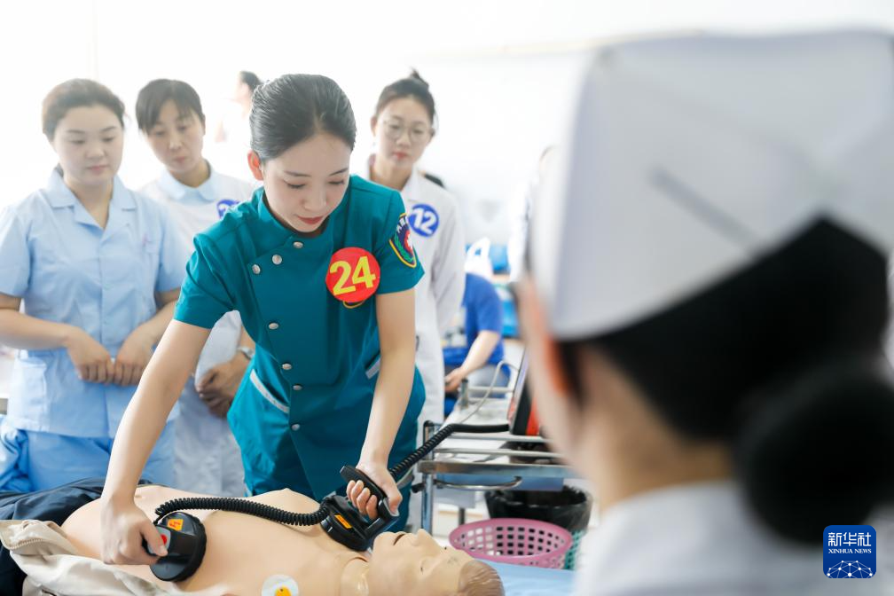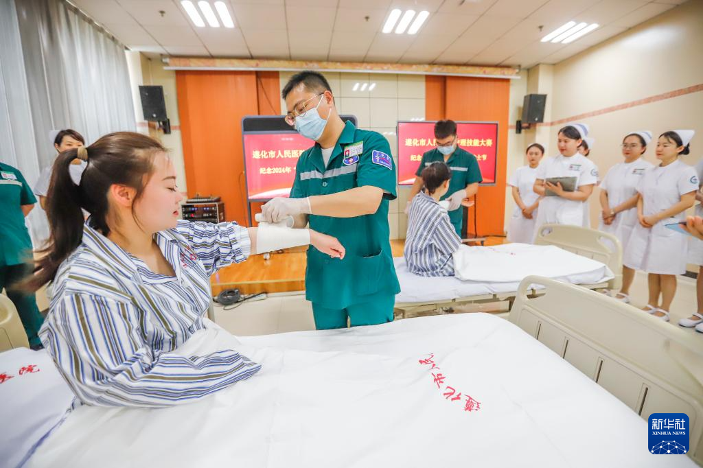 5月10日,河北省遵化市人民医院的护士在参加技能比赛。