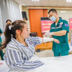 5月10日,河北省邢台医专第二附属医院的护士进行业务技能比赛。
