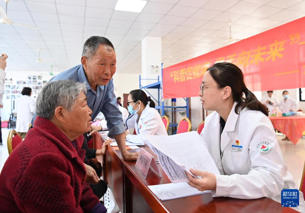 5月10日,浙江省东阳市中医院的医护人员在城东街道东锋村文化礼堂给居民进行健康义诊。