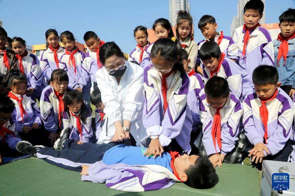 5月10日,在陕西省延安市,学生体验应急处置措施。