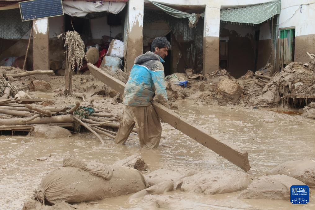 5月11日,在阿富汗巴格兰省巴格兰尼马尔卡济区,一名男子在受洪水影响的区域进行清理工作。