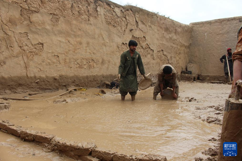 5月11日,在阿富汗巴格兰省巴格兰尼马尔卡济区,人们在受洪水影响的区域进行清理工作。