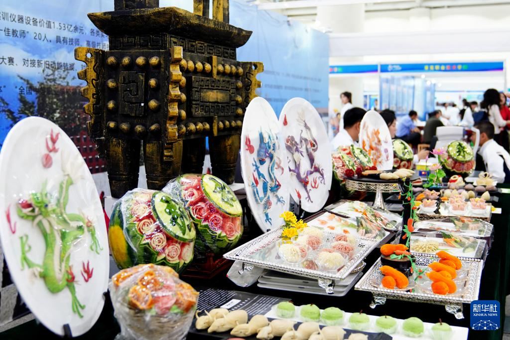 5月11日,在济南舜耕国际会展中心,济南市技师学院展示师生创作的作品。