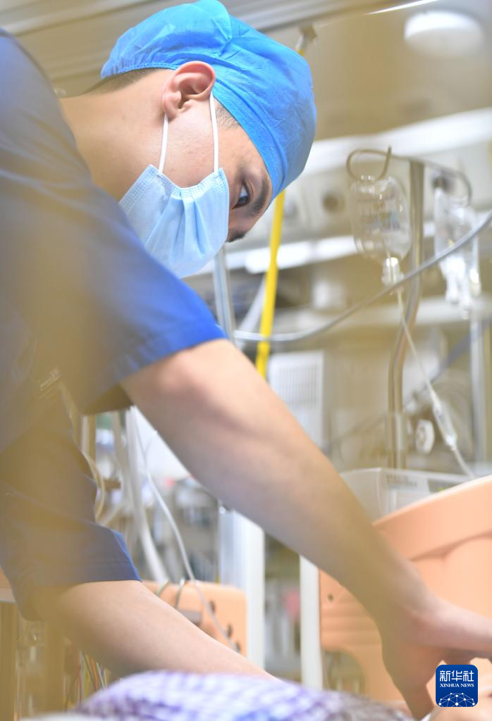 5月9日,刘颖哲在儿科监护室护理患儿。