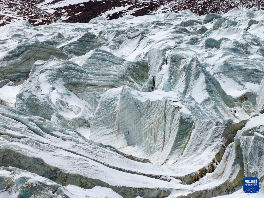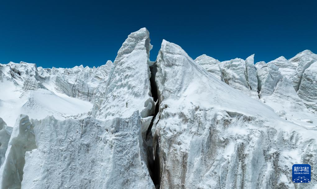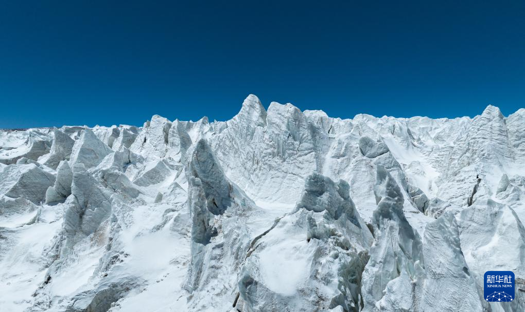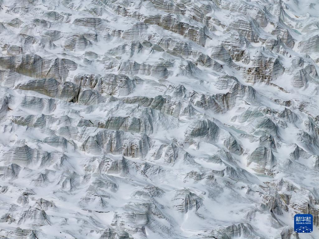 藏色岗日冰川冰塔林(无人机照片,5月11日摄)。