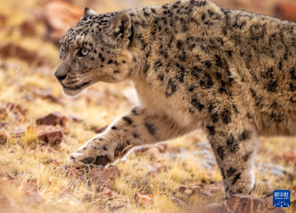 在西藏那曲市尼玛县境内的羌塘国家级自然保护区核心区,一只侵害牧民牲畜的雪豹被放归自然(5月7日摄)。