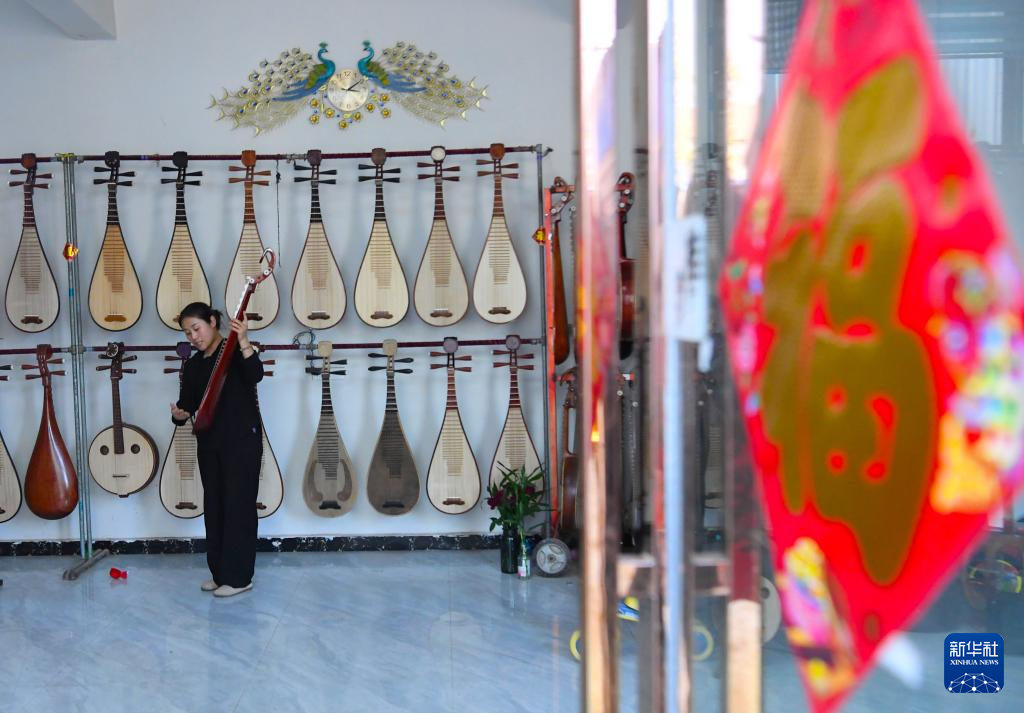 这是4月17日在兰考县堌阳镇徐场村拍摄的一处民族乐器家庭作坊。