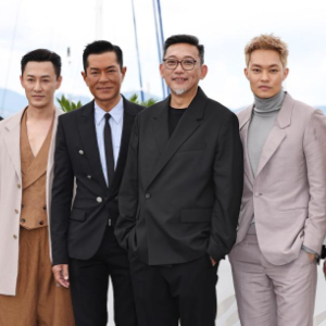5月16日,在法国戛纳举行的第77届戛纳国际电影节上,中国香港影片《九龙城寨之围城》的导演郑保瑞(右)、演员古天乐(中)、林峯亮相拍照式。