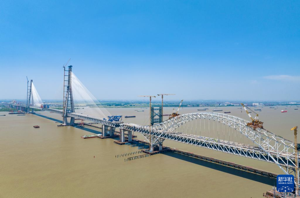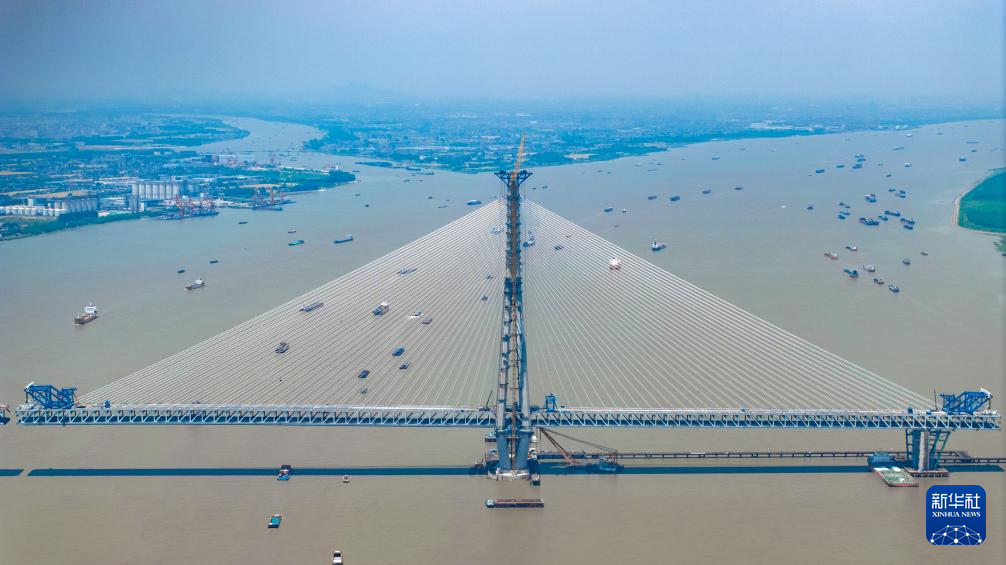 建设中的常泰长江大桥(5月17日摄,无人机照片)。