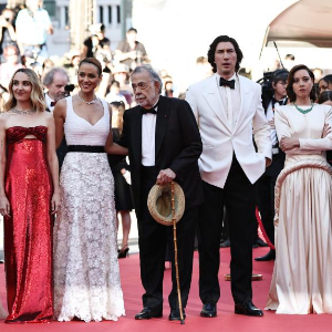 5月16日,在法国南部小城戛纳举行的第77届戛纳国际电影节上,主竞赛单元影片《大都会》的导演弗朗西斯·科波拉(右三)携主创出席首映礼。