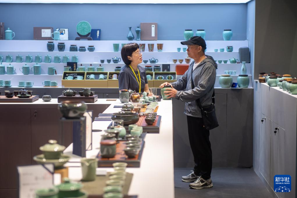 5月17日,观众在第六届中国国际茶叶博览会上选购茶器。