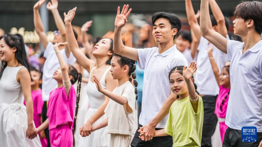 5月18日,贵阳市花溪区方阵的表演队伍在进行巡游。