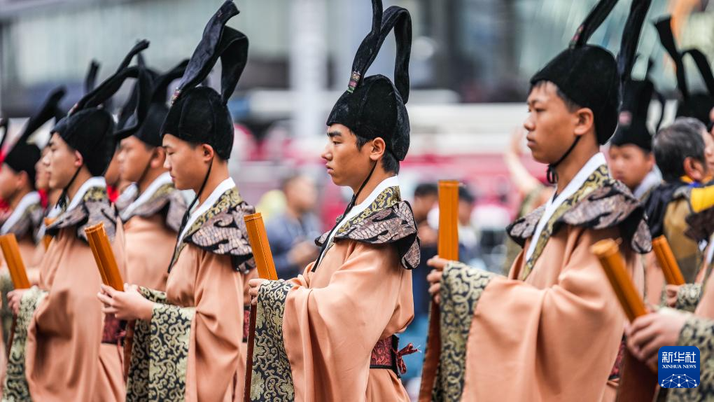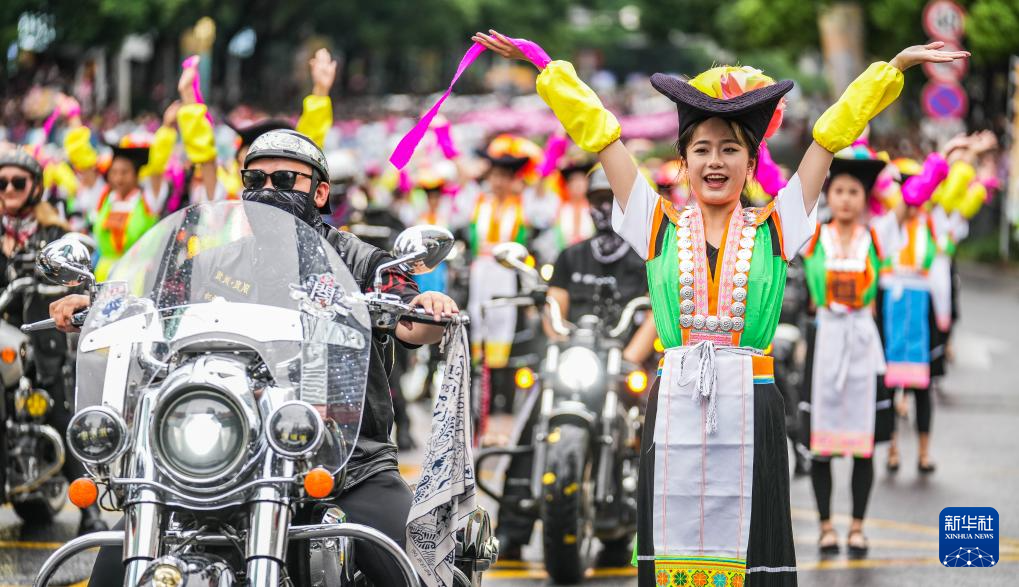 5月18日,贵阳市修文县方阵的表演队伍在进行巡游。