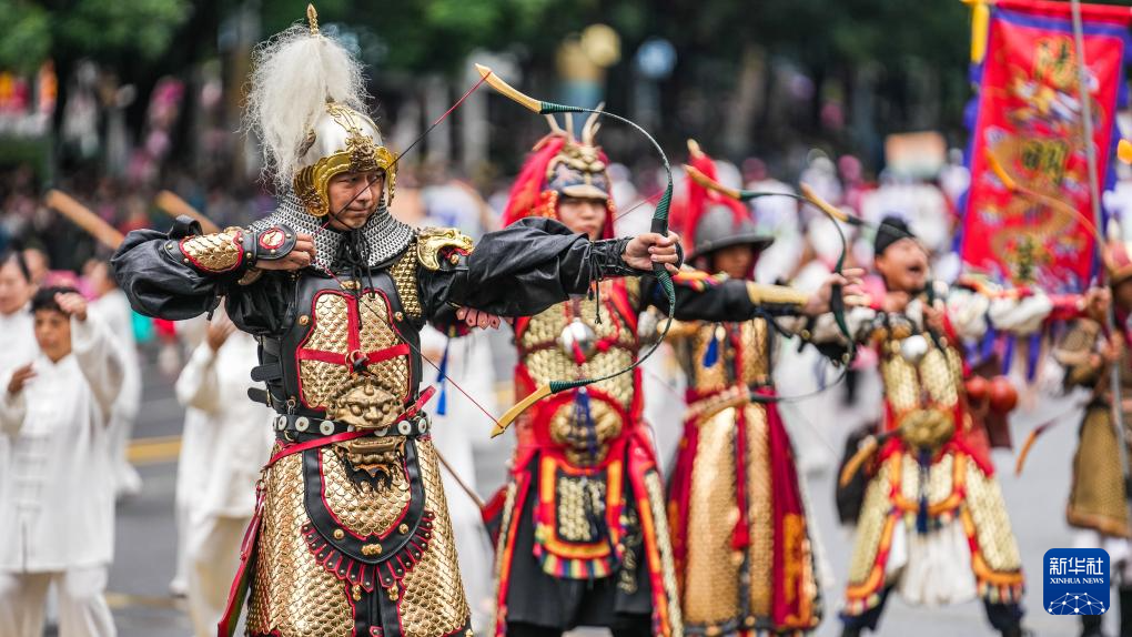 5月18日,中华武术方阵的表演队伍在进行巡游。